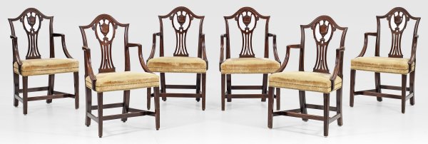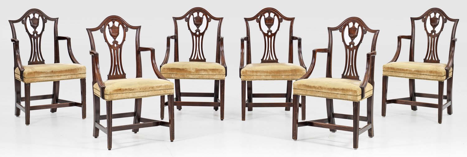 Lot 2324: Satz von sechs Hepplewhite-Armlehnstühlen