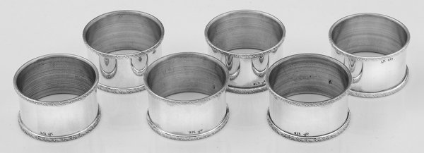 Six Sterling silver napkin rings. Standard mark 925.