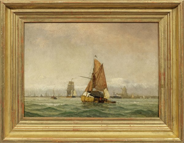 Impressiv aufgefasstes, in warmen Farbtönen gemaltes, typisches Werk des bekannten dänischen Marinemalers, der die Königlich Dänische Kunstakademie in Kopenhagen besuchte und durch ein Stipendium ab 1865 in Düsseldorf ansässig war.
