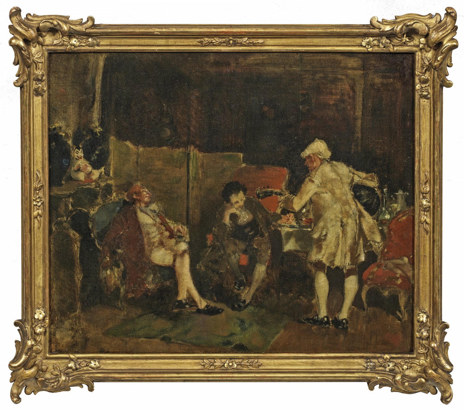 Rokoko-Szene mit drei Herren in einem Salon