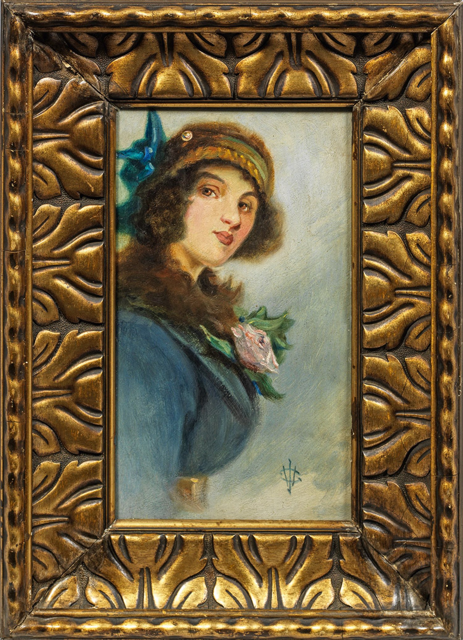 Oil on panel. Monogrammed.