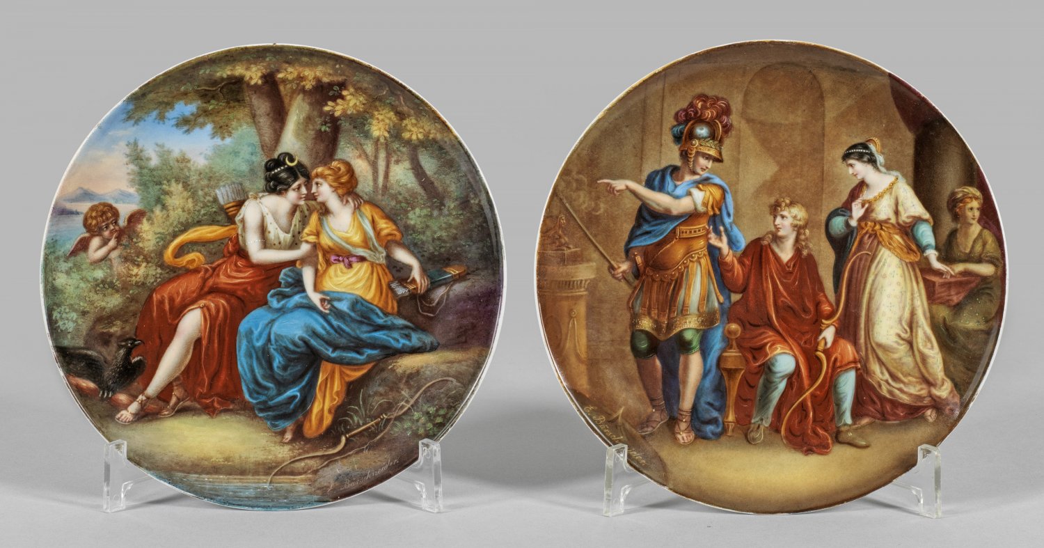 Lot 2863: Paar Bildteller mit Szenen nach Angelika Kauffmann