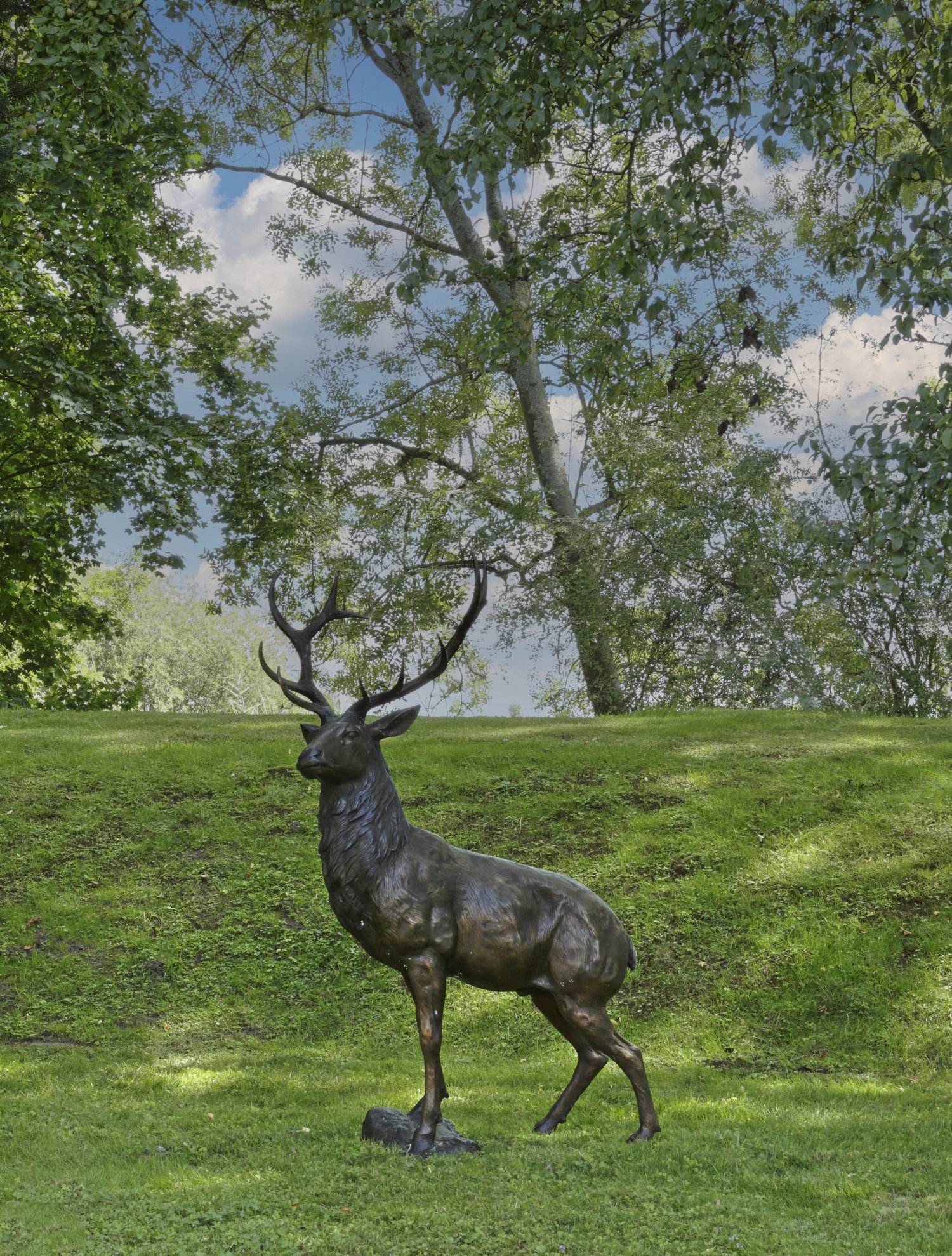 Großer Rothirsch als Parkskulptur