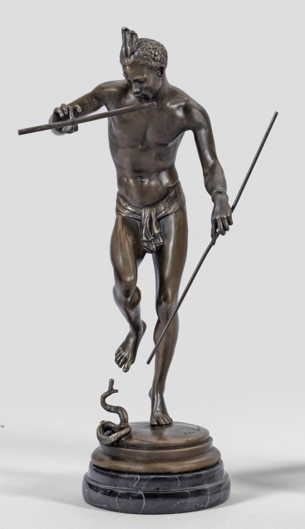 Bronze, braun patiniert. Bez.; Schwarzer Marmorsockel. Posthumer, zeitgenössischer Guss, Ende 20./Anfang 21. Jh.; H. 34,5 cm.