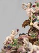 A splendid porcelain candelabra as centrepiece composed of seven figural elements depicting a bacchanalia scene with Bacchus and his entourage. Modelled by J. J. Kaendler, ca. 1766. Insignificantly restored. Crossed swords mark. Second half of 19th C.