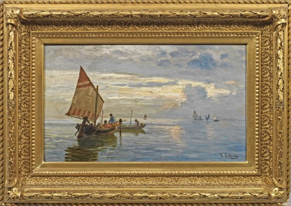 Mit teilw. pastosem Duktus gemalte, impressionistisch aufgefasstes Werk der Landschafts- und Marinemalerin, die mit Vorliebe Küstenmotive aus Norwegen, den Lofoten und der Lagune mit Fischern malte. Lutteroth, die in Hamburg, Karlsruhe und München ausgebildet wurde, debütierte 1880 auf der Berliner Akademie-Ausstellung und beschickte bis 1894 eine Reihe bedeutender Ausstellungen, außer in Berlin u. a. in Bremen, Hannover, München und Wien. Öl/Lwd.; R. u. sign.; 35 cm x 59 cm. Wohl Original-Rahmen.