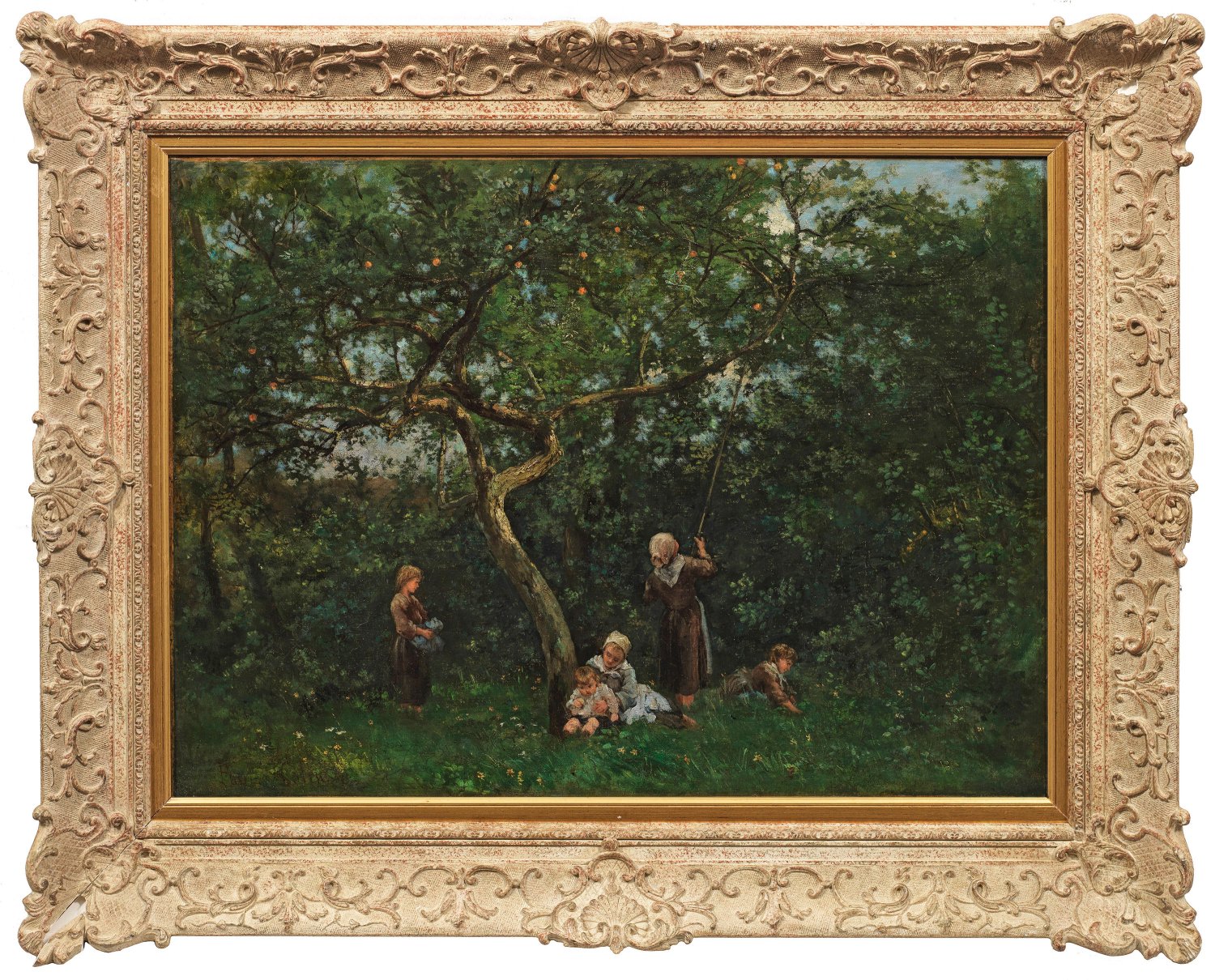 Von der Schule von Barbizon und den Impressionisten beeinflusste Landschaft mit effektvollen Farbakzenten und pastosen Lichthöhungen, die zu den schönsten seiner Oeuvres gezählt werden kann. Colin stammt aus einer Künstlerfamilie und malte regelmäßig in Yport in der Normandie, wo er auch ein Grundstück erwarb und sich der dortigen Künstlerkolonie, der sog. "Académie d'Yport" anschloss. 1863 debütierte er auf dem Salon in Paris und präsentierte in den folgenden Jahren regelmäßig normannische Landschaften. Er wurde 1875 im Pariser Salon sowie 1889 und 1900 auf der Weltausstellung in Paris mit einer Bronzemedaille ausgezeichnet. 1901 wurde er zum Offizier der Ehrenlegion ernannt. Öl/Lwd.; L. u. sign.; 53 cm x 81 cm. Rahmen.