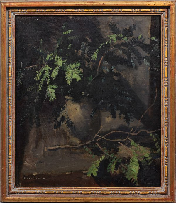Impressionistisches Stillleben Herrmanns, der in Karlsruhe und München studierte und Meisterschüler von Hugo von Habermann war. Nach einem Studienaufenthalt in Paris 1925/26 kehrte er nach Karlsruhe zurück, wo er die Ausstellungen des Badischen Kunstvereins beschickte. Öl/Lwd.; L. u,. sign.; Verso bez. mit Ortsangabe Karlsruhe. 72 cm x 66,5 Rahmen.