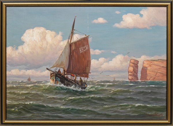 Fischerboot vor Helgoland mit der Langen Anna