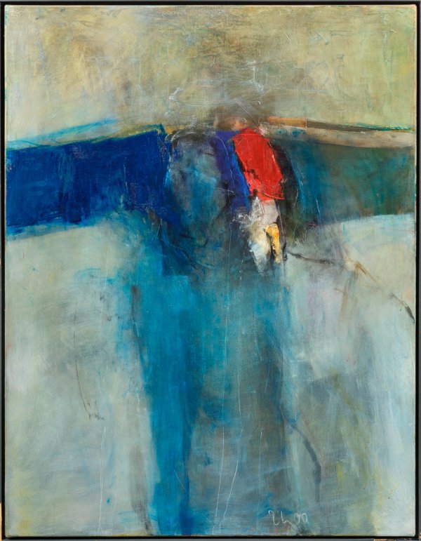 Abstrakte Komposition mit changierenden, verwischten und überlagerten Farbflächen, die sich mittig verdichten und durch zeichnerische Elemente figurative Assoziationen evozieren. Ritter studierte an der Fachhochschule Hannover bei Prof. Redeker, seit 1990 hatte der freischaffende Maler zahlreiche internationale und nationale Einzel- und Gruppenausstellungen in Deutschland, Europa und in den USA. Öl/Lwd.; R. u. sign. und dat. (20)00. 130 cm x 100 cm. Rahmen.