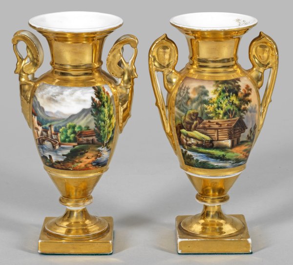 Lot 3061: Zwei Empirestil-Ziervasen mit Landschaftsdekor