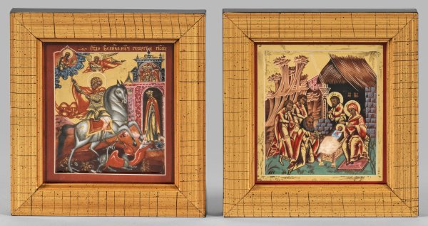 Lot 3200: Paar Reise-Ikonen "Der Heilige Georg" und "Christi Geburt"