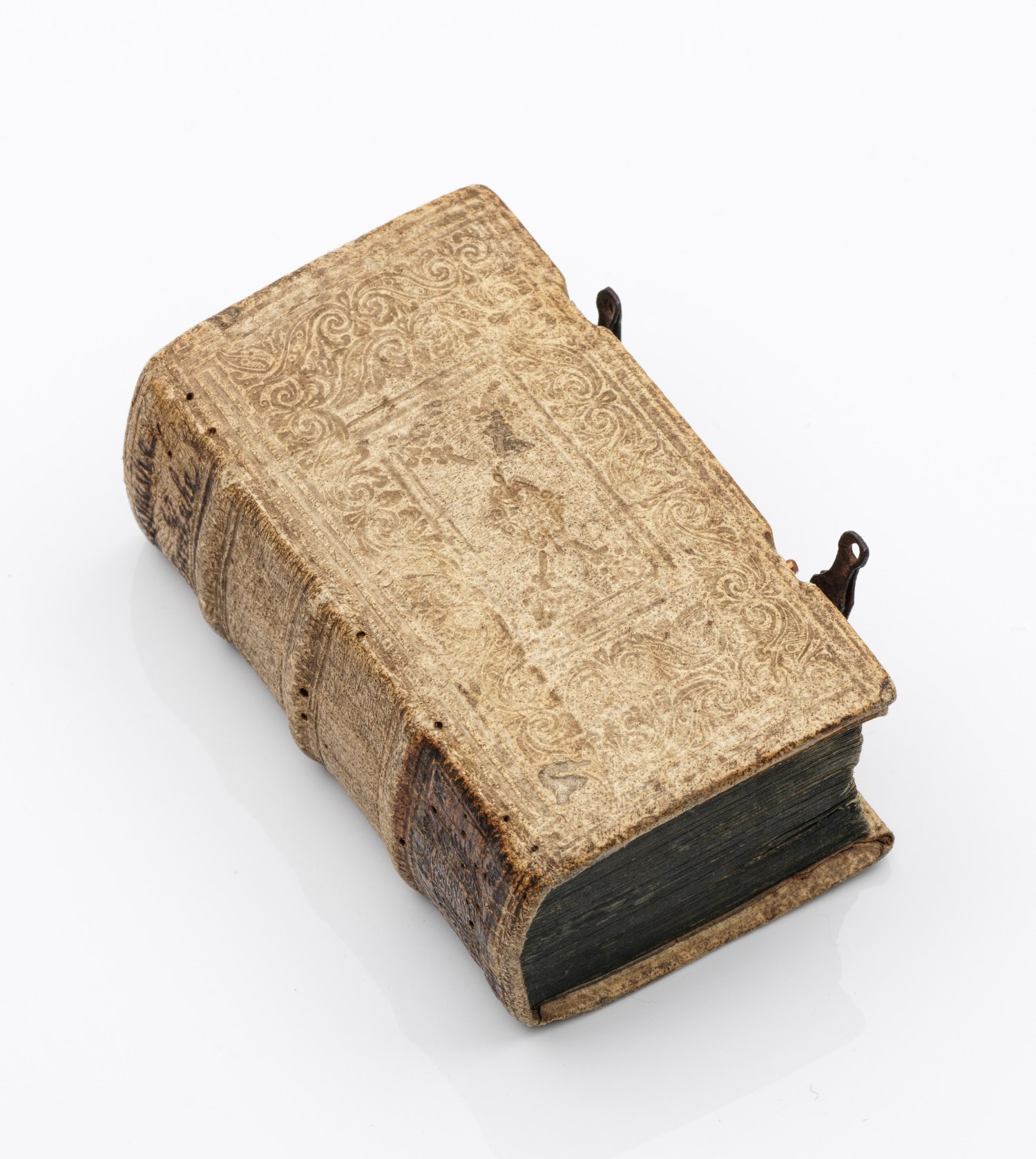 Enthalten: U. a. Cimilotti, Ercole ("Cimilotti, Hercole"): "I Falsi Favola Pastorale", Venedig, 1620.; Alodnarim, Fabritio "I Sacchi", Bologna, 1633.; Castelletti, Christoforo "I Torti Amorsi", Venedig, 1627.; Barbieri, Nicolò "L'inavertito", Venedig, 1630. Frontispize teilw. mit Kupferstichen. Text Italienisch. Einband Schweinsleder, geprägt. Altersbedingte Gebrauchsspuren. Nicht kollationiert. 7 cm x 13 cm.