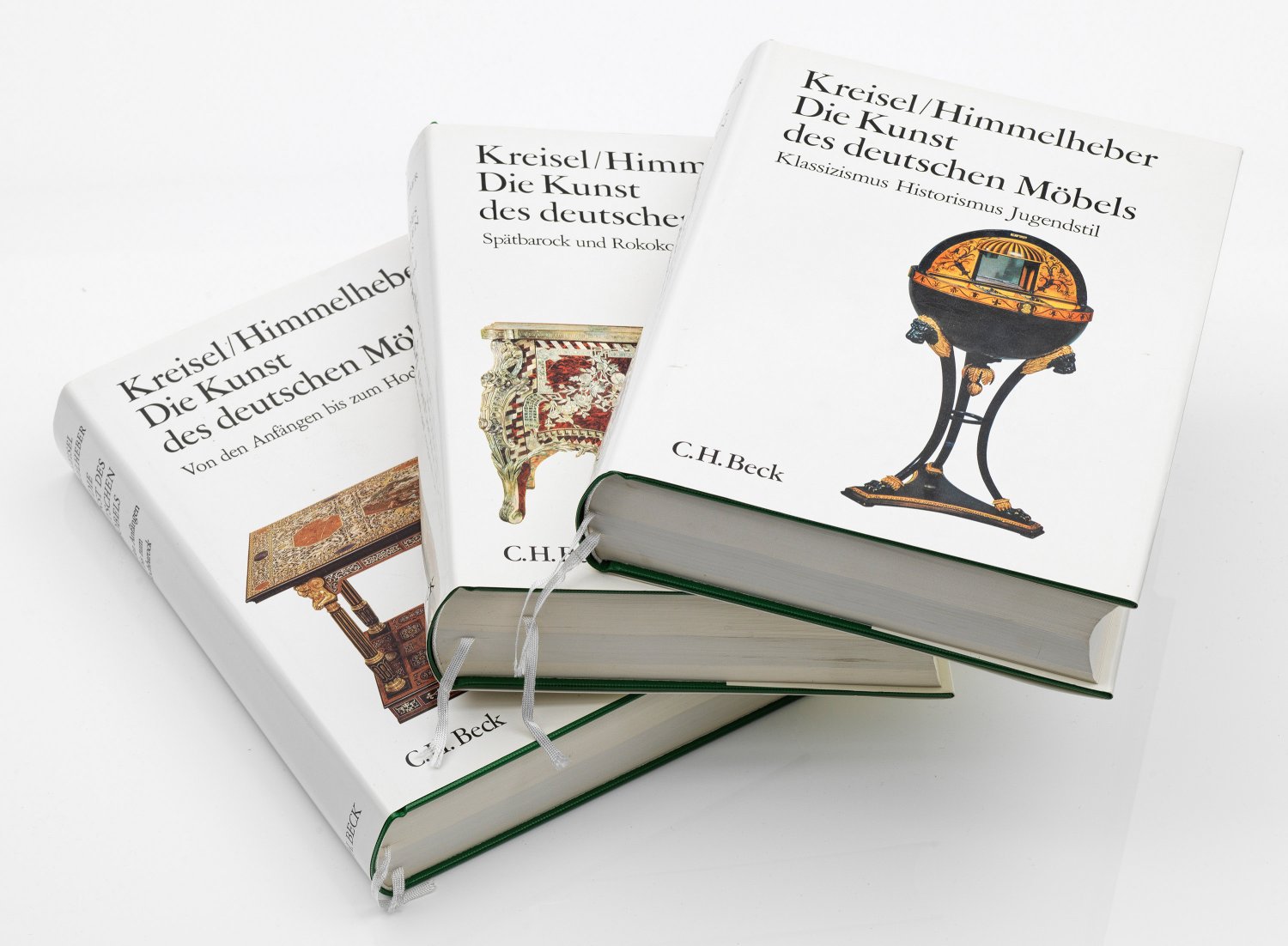 3 Bde.; "Von den Anfängen bis zum Hochbarock", "Spätbarock und Rokoko" sowie "Klassizismus, Historismus, Jugendstil". Heinrich Kreisel/Georg Himmelheber. Dritte Auflage, 1981. Erschienen im Verlag C. H. Beck München. Grünes Hardcover mit Schutzumschlägen und Lesebändchen. Insgesamt in sehr gutem Erhaltungszustand. Nicht kollationiert. 30 cm x 23 cm.