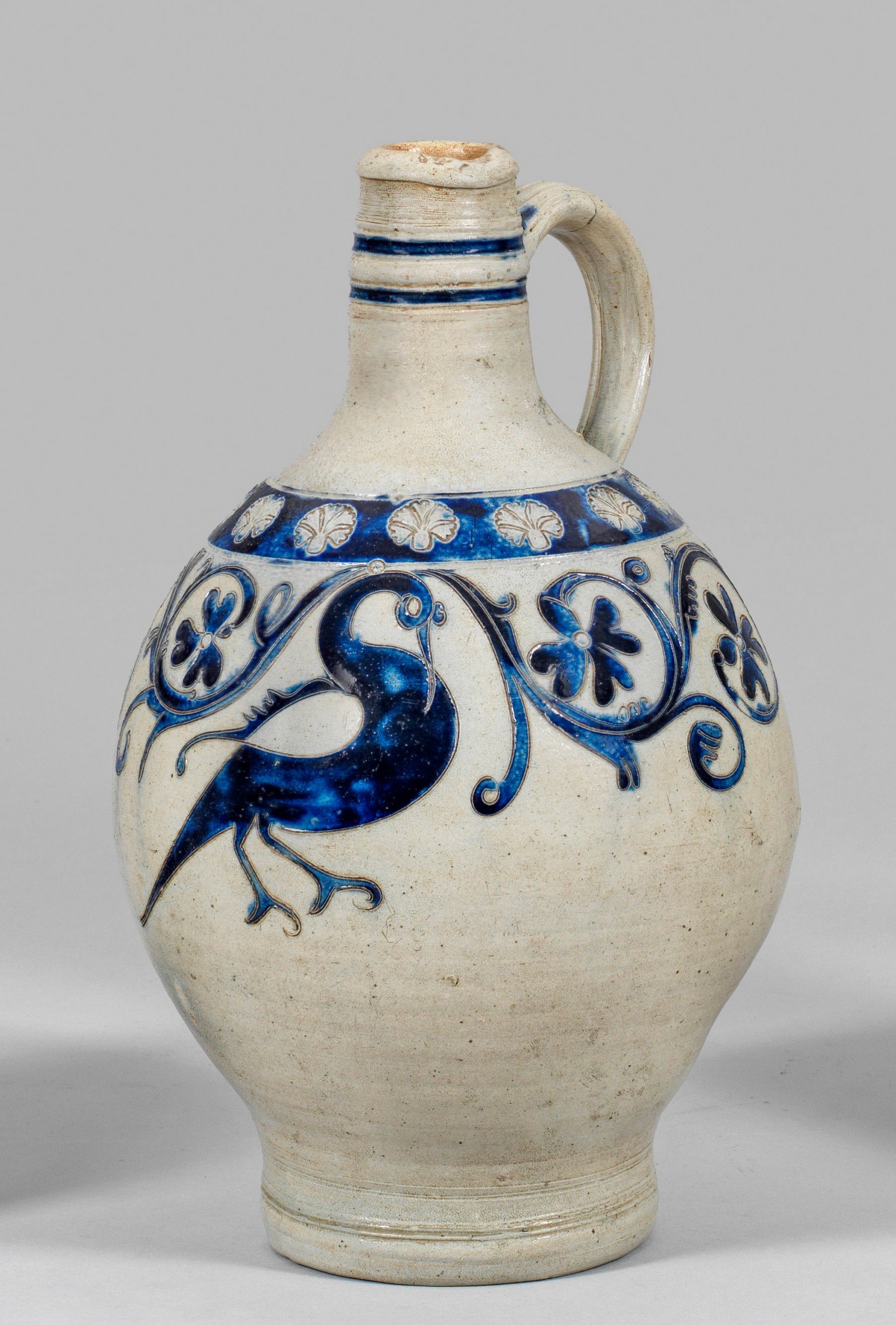 Lot 200: Großer Westerwälder Enghalskrug mit Vogeldekor