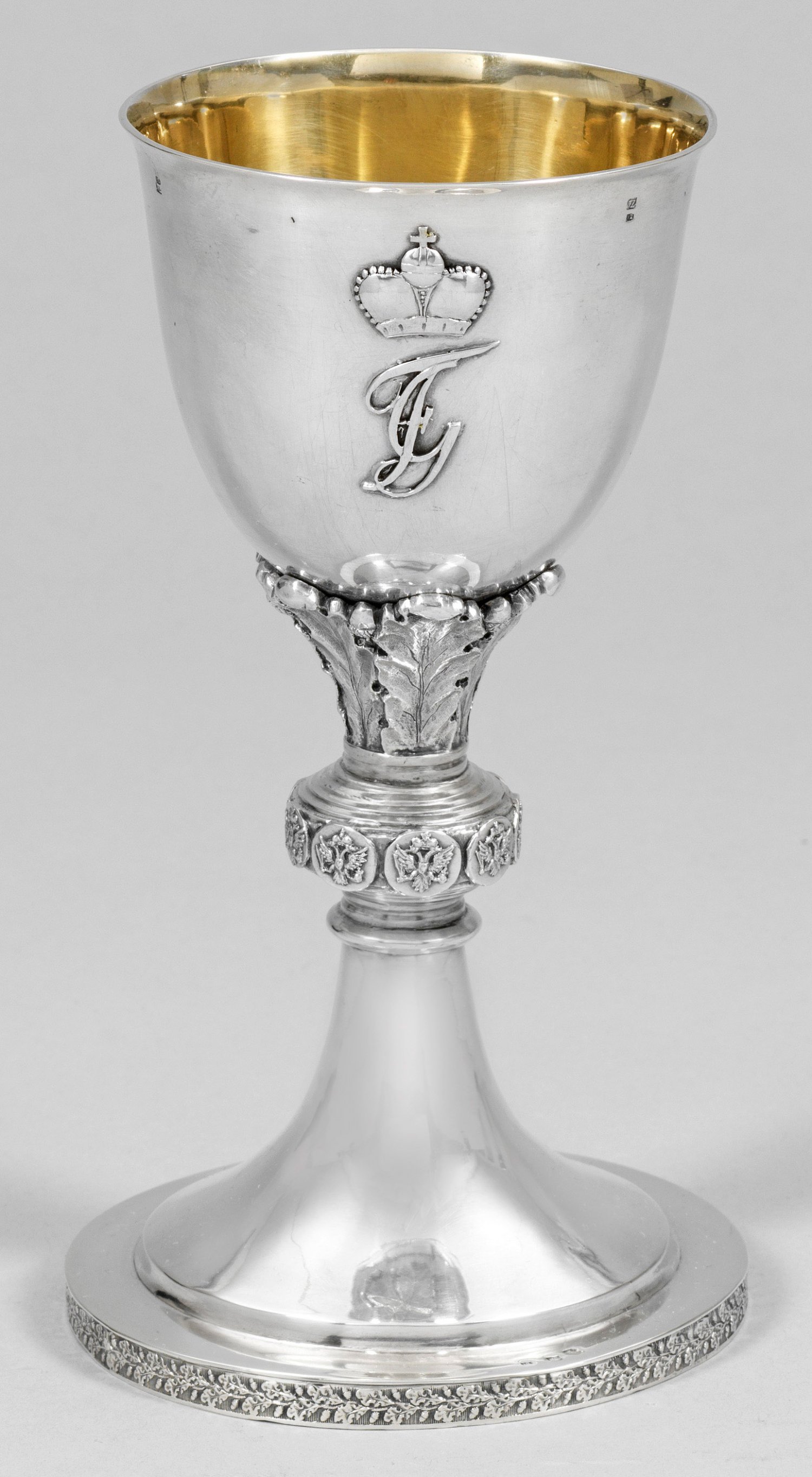 A Brunswick Biedermeier silver cup from the former property of the Prince Friedrich Günther von Schwarzburg-Rudolstadt (1793-1867) by Johann Zacharias Zuckschwerdt (master since 1772). Gilt inside. Standard mark 12 lot, assay and master´s mark.