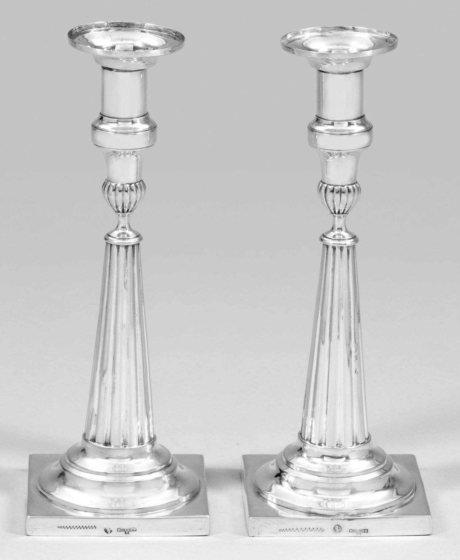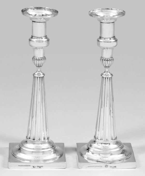 A pair of German Empire silver candlesticks by a master from the Müller family in Berlin. Test, assay and master's mark. Later tax mark for Austria, Vienna.