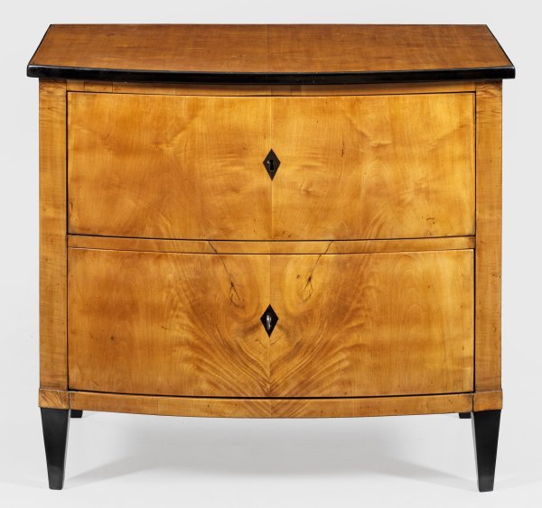 A German maplewood veneered and partly ebonized Biedermeier chest of drawers.
