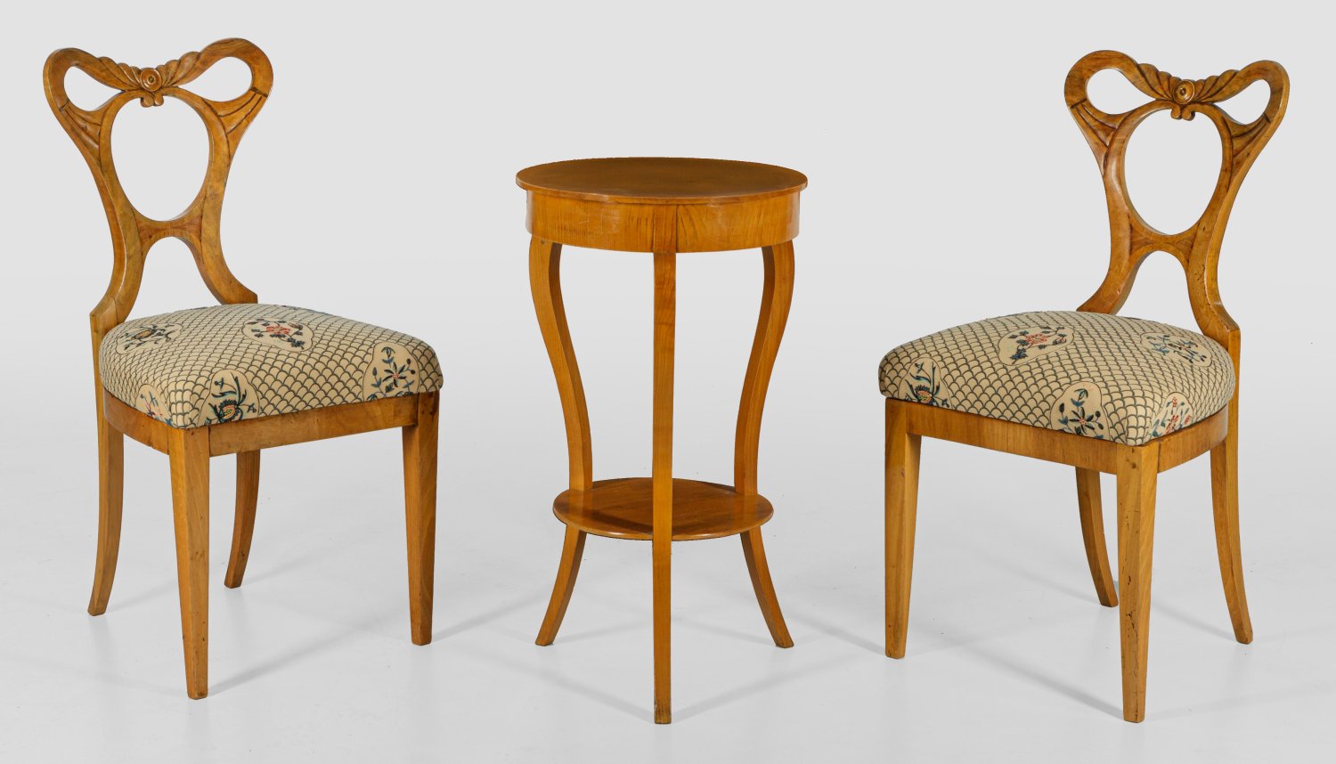 Lot 1326: Paar Biedermeier-Stühle und Gueridon