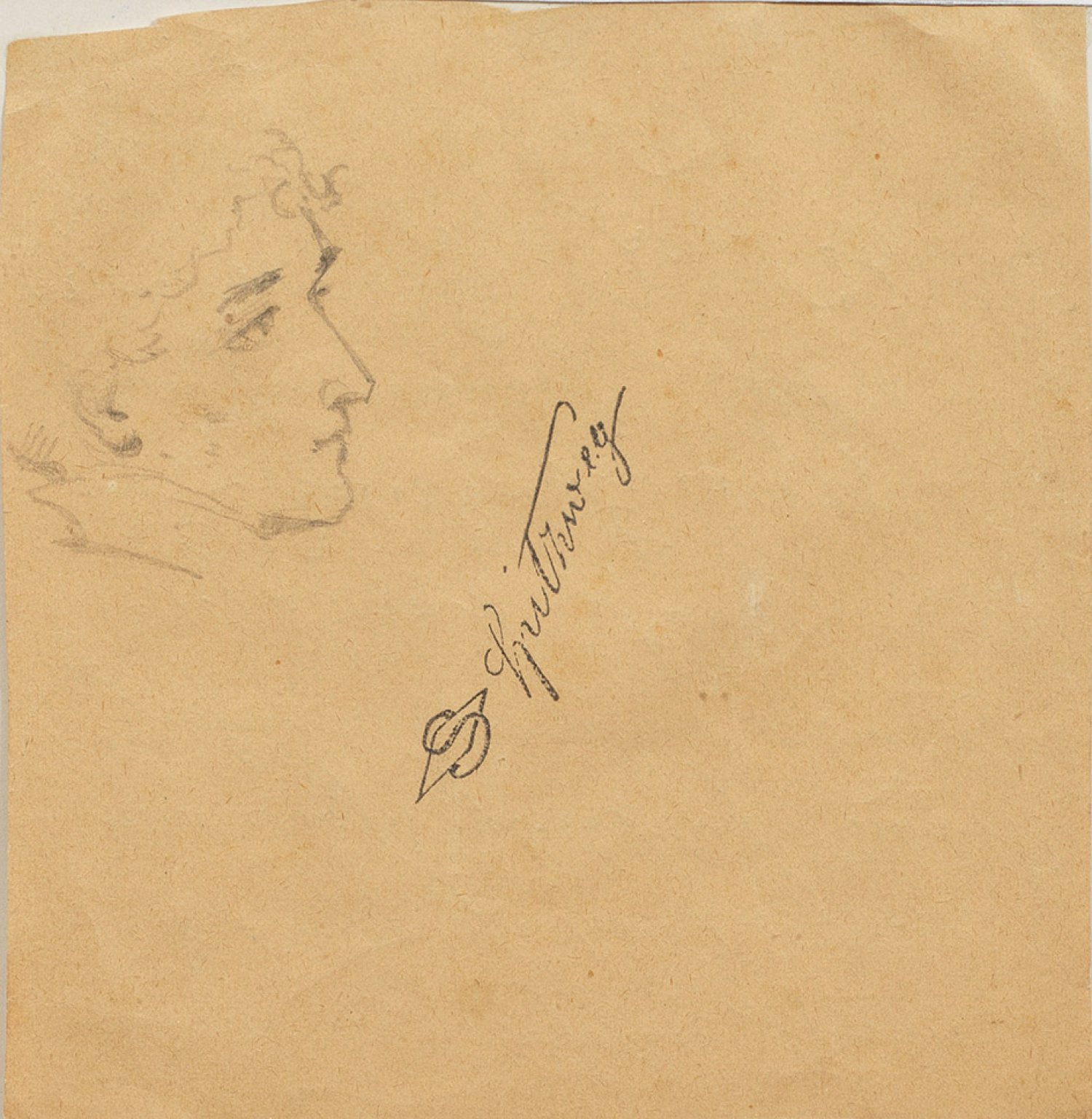 In dem Studienblatt spiegelt sich das Talent Spitzwegs als Zeichner und in der genauen Beobachtung seiner Mitmenschen wider, das stets auch seinen heute berühmten Gemälden zugutekam. Bleistift/Papier. Mittig Nachlass-Stempel. Partiell ger. knickfaltig. Blatt ca. 11,6 cm x 11,3 cm. Rahmen.