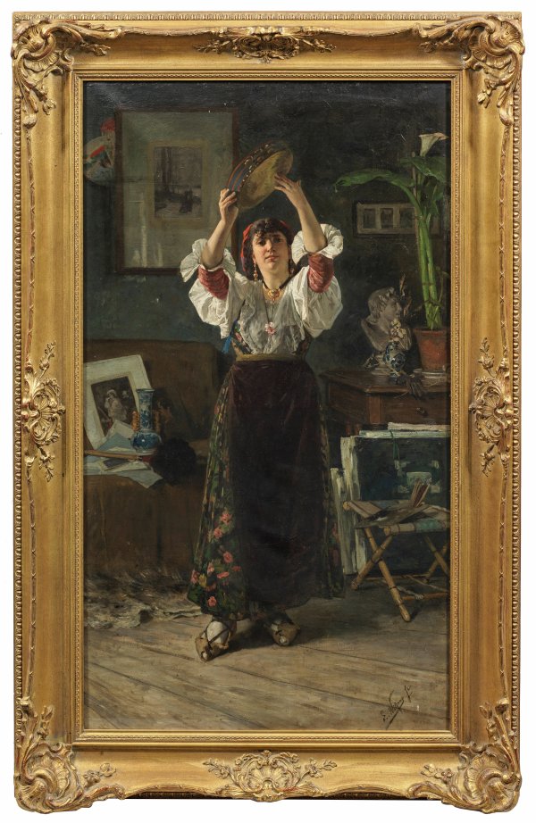Bildnis einer jungen Frau mit Tamburin als Spanierin im Atelier