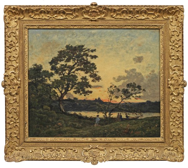 Impressiv aufgefasstes, in Motiv und Stil repräsentatives Werk des Künstlers. Harpignies war ein Schüler des Landschaftsmalers Jean Alexis Achard und wurde wesentlich durch die Schule von Barbizon, insbesondere Camille Corot beeinflusst. 1852 richtete sich Harpignies ein eigenes Atelier in Paris ein, ab 1878 war er in Saint-Privé ansässig. Regelmäßig stellte er ab 1853 im Pariser Salon aus, wo er 1868 und 1869 eine Medaille gewann, 1900 erhielt er den Grand Prix auf der Weltausstellung. Harpignies ist in zahlreichen bedeutenden Museen wie dem Musée d'Orsay mit Werken vertreten. Öl/Lwd.; L. u. sign. u dat. (18)87. Verso Etikett der Galerie Bühler, München. 38,5 cm x 46,5 cm. Wohl Original-Rahmen.