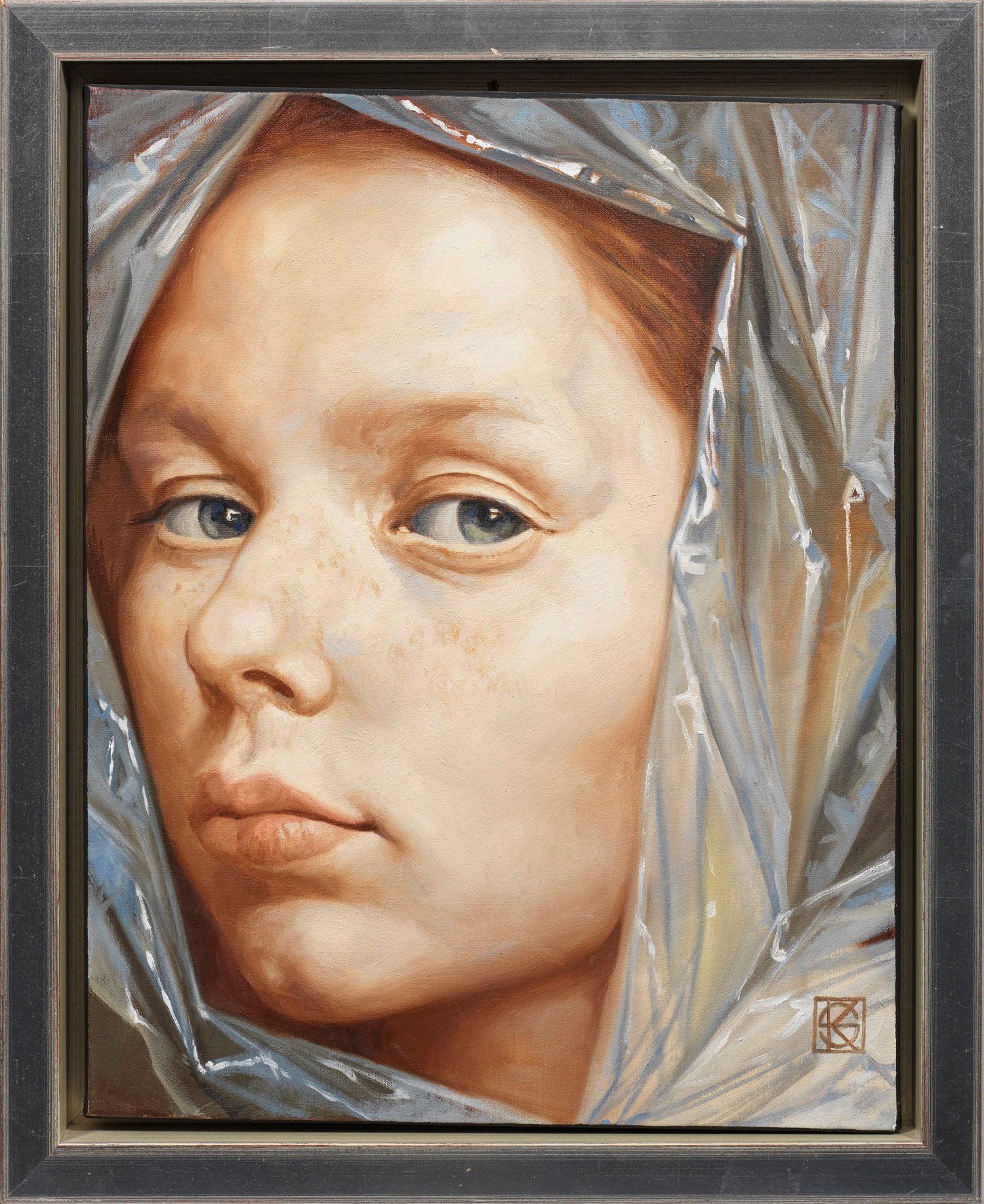 Symbolistisches, vom Fotorealismus beeinflusstes Bildnis eines Mädchens. Kurbanov studierte 1983-1987 an der Fachkunstschule in Machatschkala, 1990-1996 an der Repin-Hochschule für Malerei, Bildhauerei und Architektur der Akademie der Künste in Sankt Petersburg. Öl/Lwd.; R. u. Ligatur-Monogr.; 49,5 cm x 40 cm. Galerie-Rahmen.