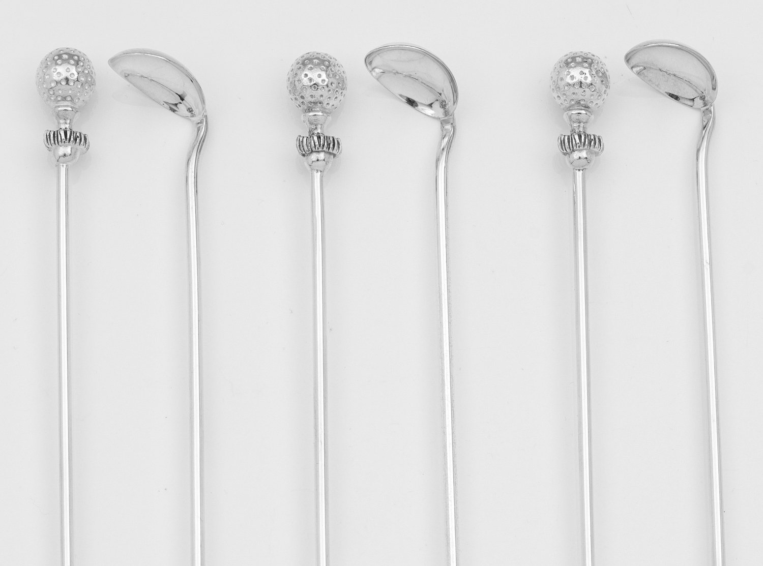 Six German Sterling silver cocktail spoons with golf ball handle. Standard mark 925, maker´s mark.