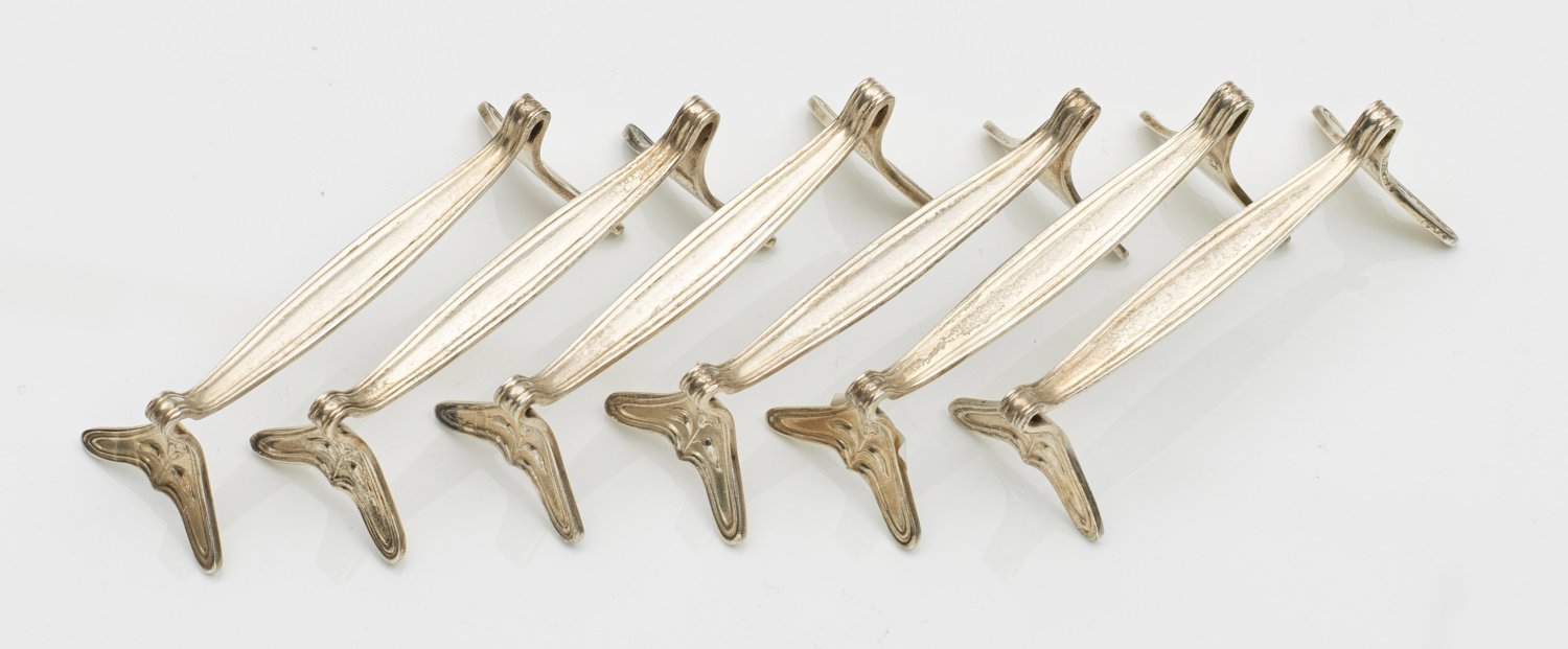 Six German Art Nouveau silver knife rests. Standard mark 800 and maker´s mark.