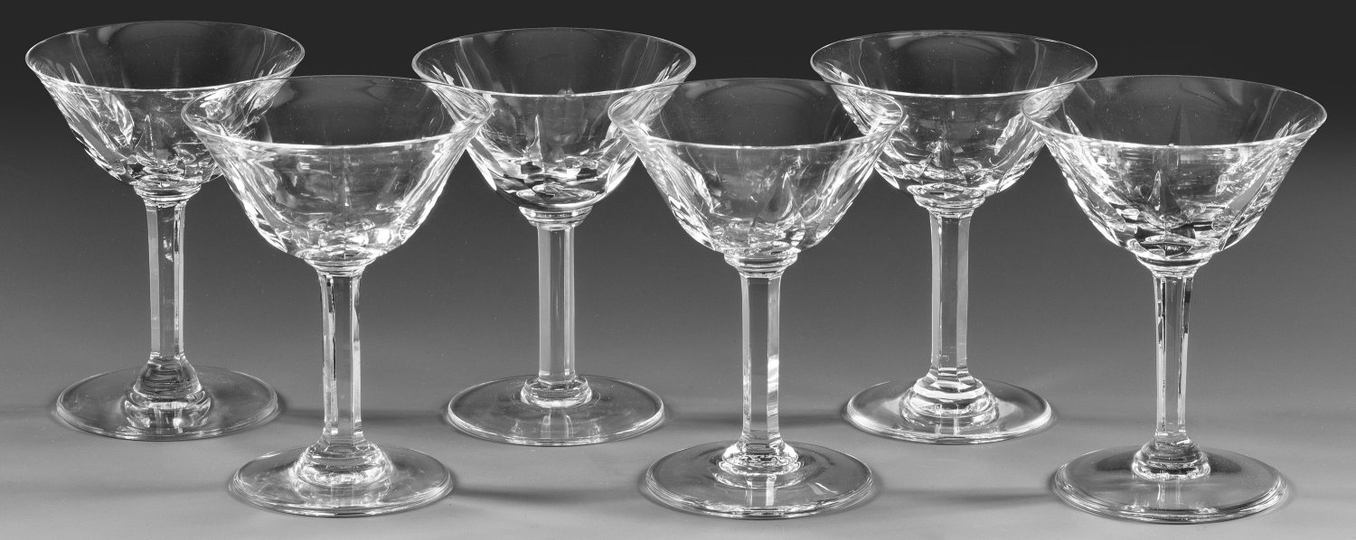 A set of six French Saint-Louis "Cerdagne" champagne glasses. Three glasses with acid factory mark.
