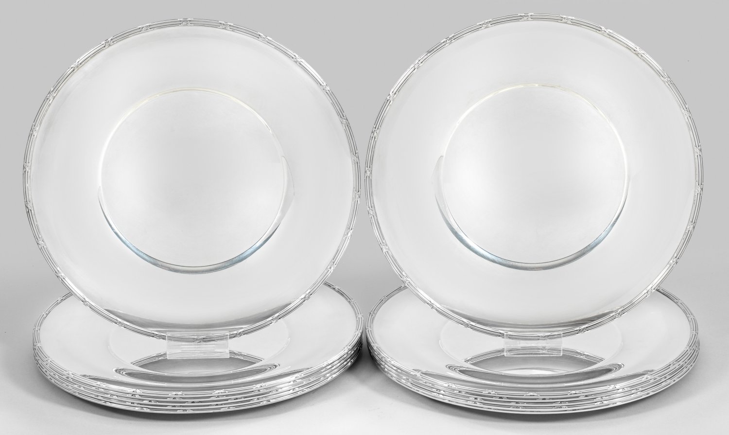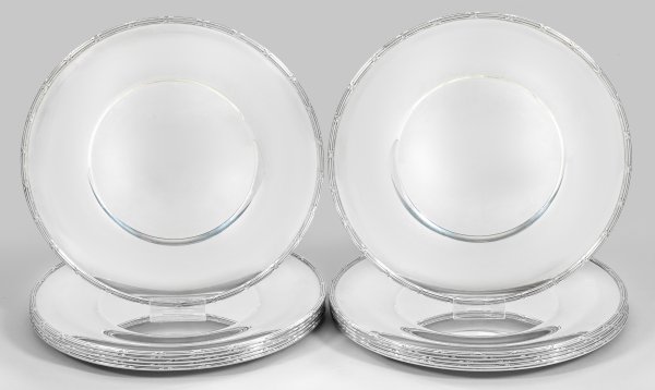 A German Empire style set of twelve Sterling silver charger plates. Standard mark 925, maker´s mark.