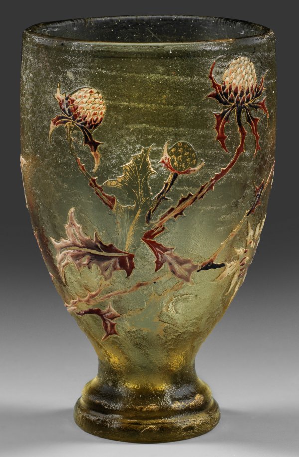 Lot 418: Frühe Gallé-Vase mit "Caderes sauvages" aus wilden Disteln