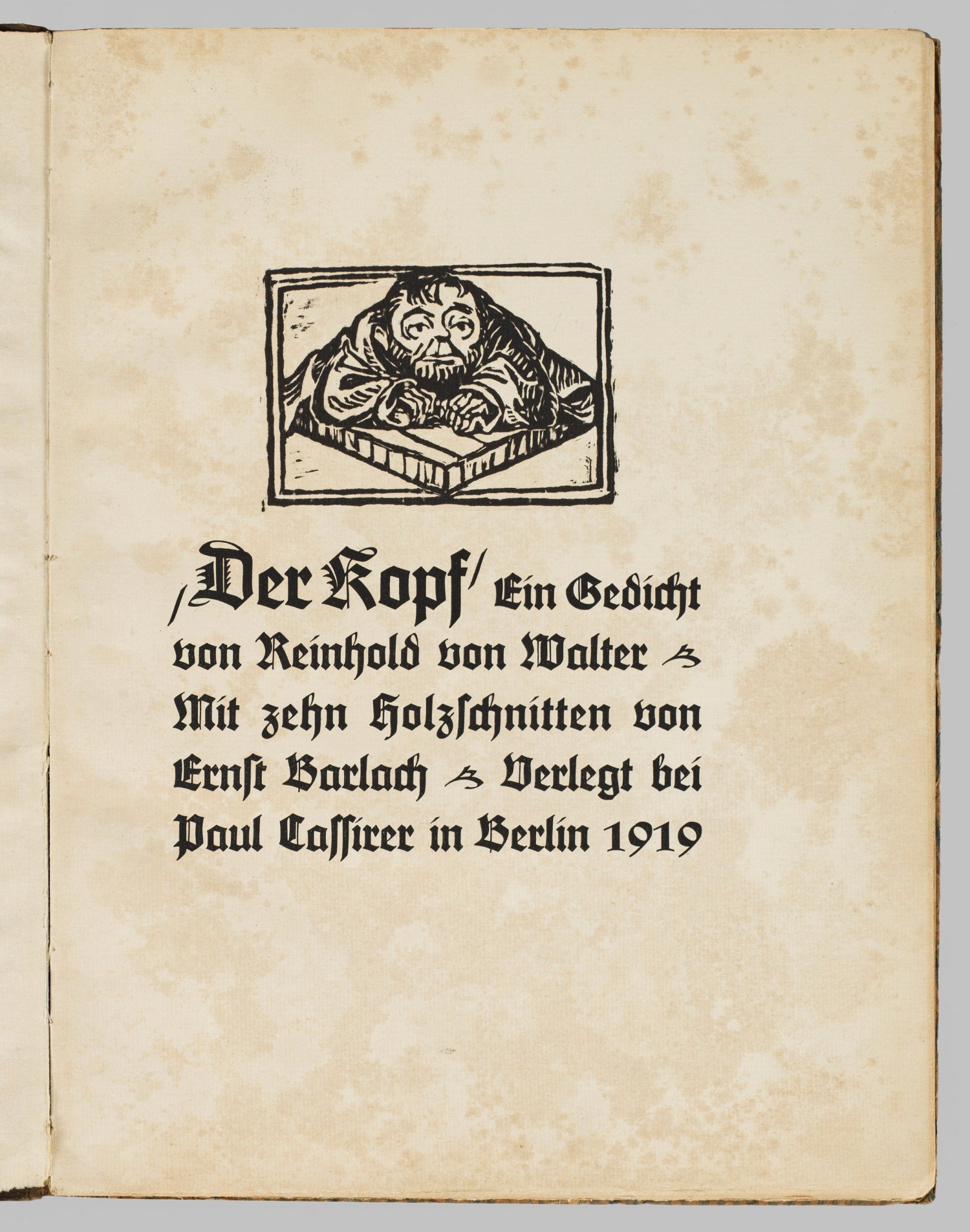 Book with poem by Reinhold von Walter illustrated with 10 original woodcuts by Ernst Barlach published in 1919. Deluxe edition, signed by the author and the artist, no. 114 of a limited edition of 200. Foxing, minor flaws to the cover.