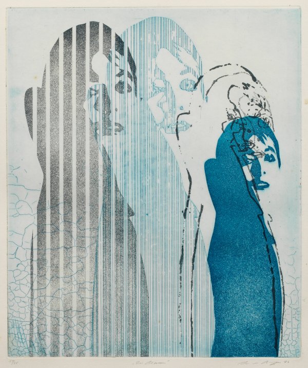 Farbradierung/Papier, 1974. Sign., dat., betitelt u. nummeriert 19/25. Seltenes Blatt des bedeutenden deutschen Pop Art-Künstlers, der mit Vorliebe verfremdete weibliche Figuren darstellte. Plattenmaß ca. 39,3 cm x 33,2 cm; Blatt ca. 59 cm x 49 cm. Rahmen.