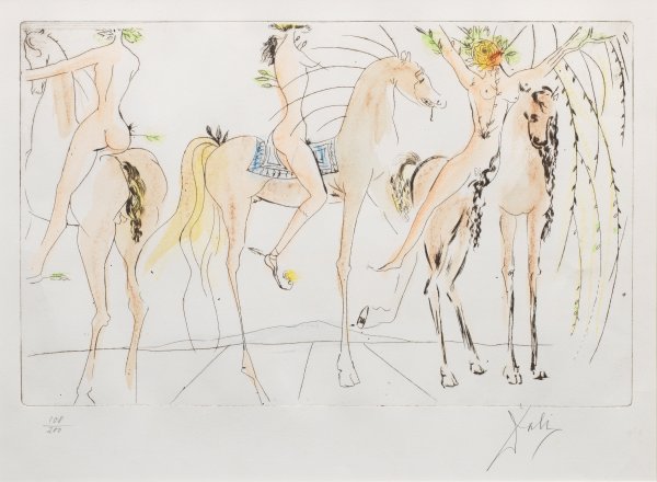 After Salvador Dalí (1904 - 1989). Drypoint and aquatint in colours on paper. Inscribed and numbered 108/200.