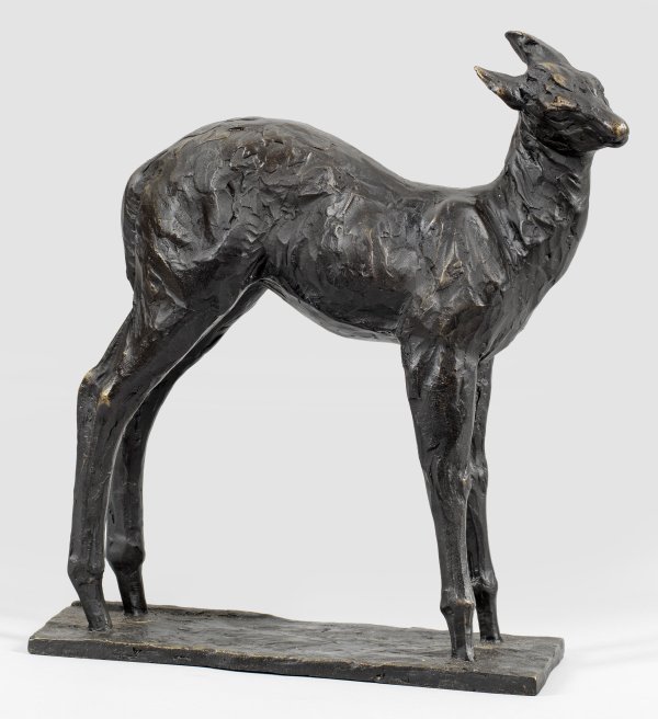 Bronze, dunkel patiniert. Posthumer, zeitgenössischer Guss, Ende 20./Anfang 21. Jh., nach der 1909/10 modellierten Plastik Bugattis. H. 24 cm; B. 37 cm.