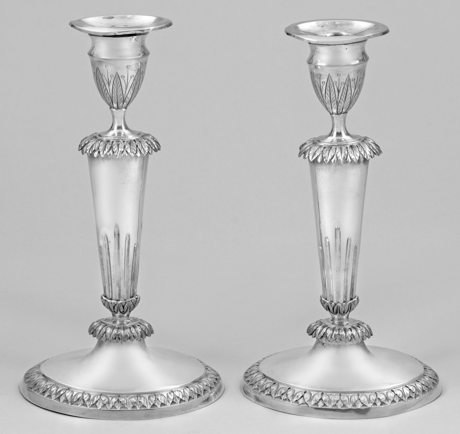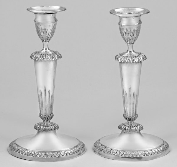 Vgl. hierzu Scheffler, Hessen, Abb. 89 (nahezu identisches Leuchterpaar von Erhard Christian Specht, 1802, Frankfurt am Main).