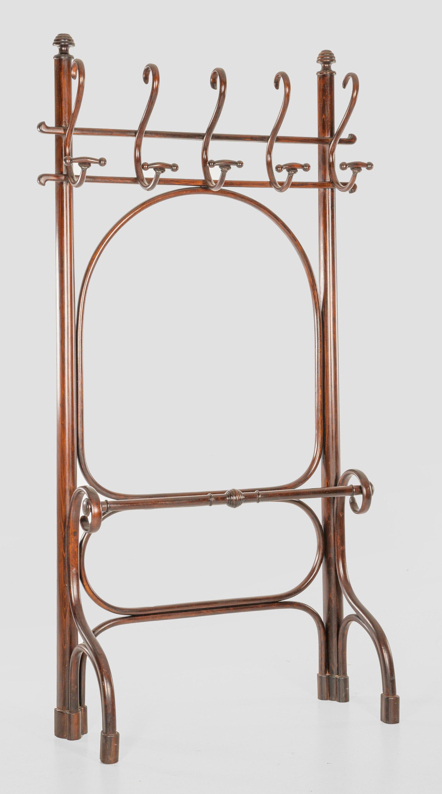A large Austrian Thonet beechwood coat rack. Manufacturer's label.