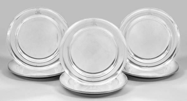 Lot 80: Satz von zwölf eleganten und schweren Platztellern