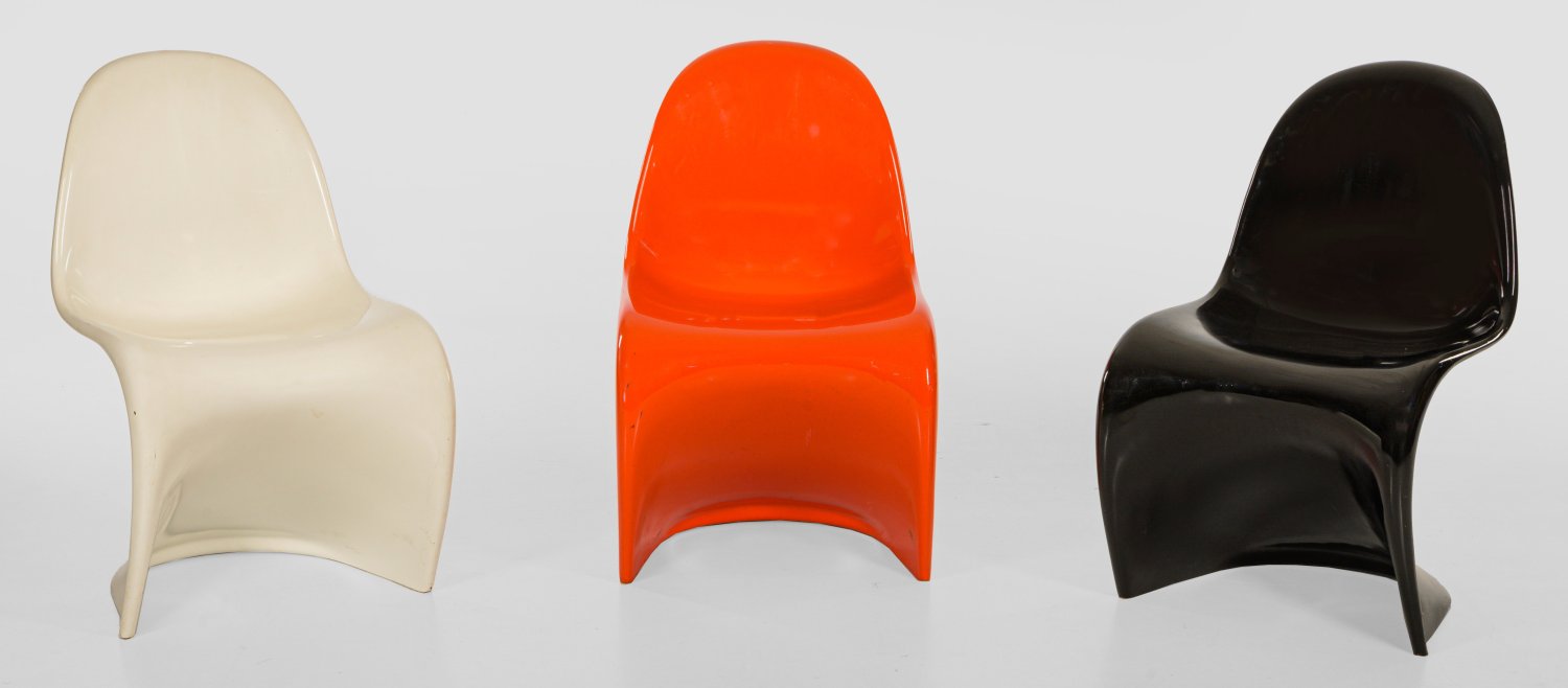 Polyurethan, Hartschaum, weiß, schwarz und rot lackiert. Organisch geformtes, freischwingendes Gestell. Entw. Verner Panton, 1967. 1x mit Etikett Hermann Miller Collection. Sitz-H. 42 cm.