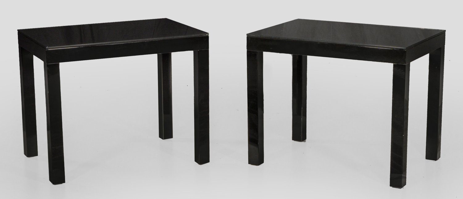 A pair of black lacquered Italian side tables.