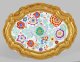 sog. Drüselkästchen. Von vier ausgezogenen Volutenfüßen getragener, ovaler, mehrfach verkröpfter, doppelwandiger und ornamental durchbrochen gearbeiteter Korpus. Seitlich Griffe in Gestalt einer plastischen Frauenbüste mit Federkopfschmuck. Reicher plastischer Dekor aus kleinen Puttenfiguren, verbunden durch Blumengirlanden und Tuchgehänge. Beidseitig der Wandung muschelbekrönte Kartuschen, darin italienische Stadtveduten mit Figurenstaffage.