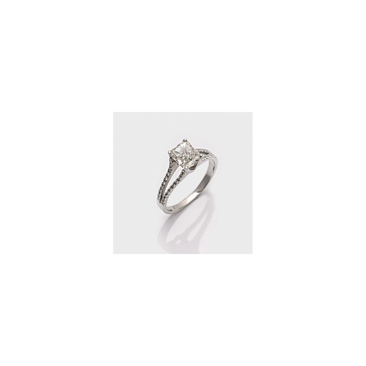 Ring set with a diamond approx. 1,50 ct. (K-L/si1) and small brilliants approx. 0,50 ct. (G/vvs), in 18 k white gold. Certificate included.