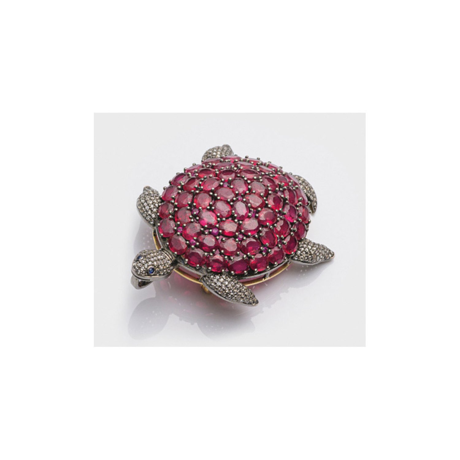 Lot 1293: Russische Schildkröten-Brosche mit Rubinen