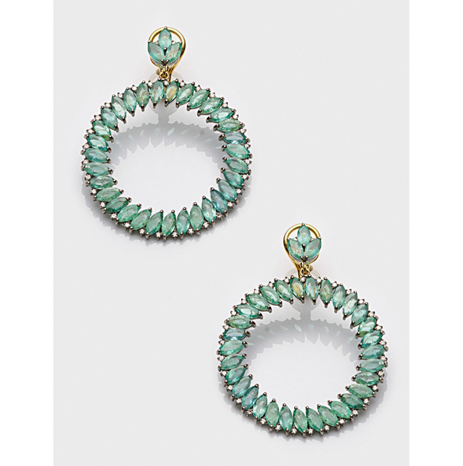 Pair of earrings set with emeralds approx. 15,78 ct. and diamonds approx. 0,59 ct.; in 14 k gold and silver.
