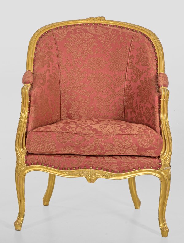 A French gilt wood Louis XV-style easy chair.