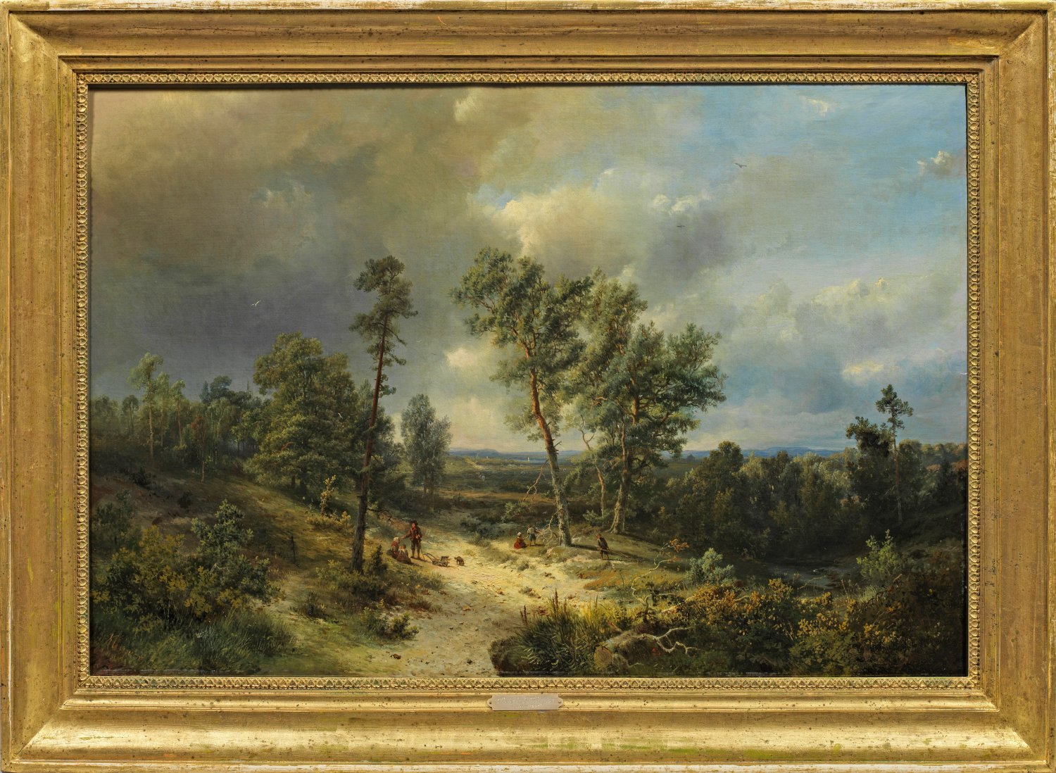 Landschaft mit Reisigsammlern an einem sandigen Weg