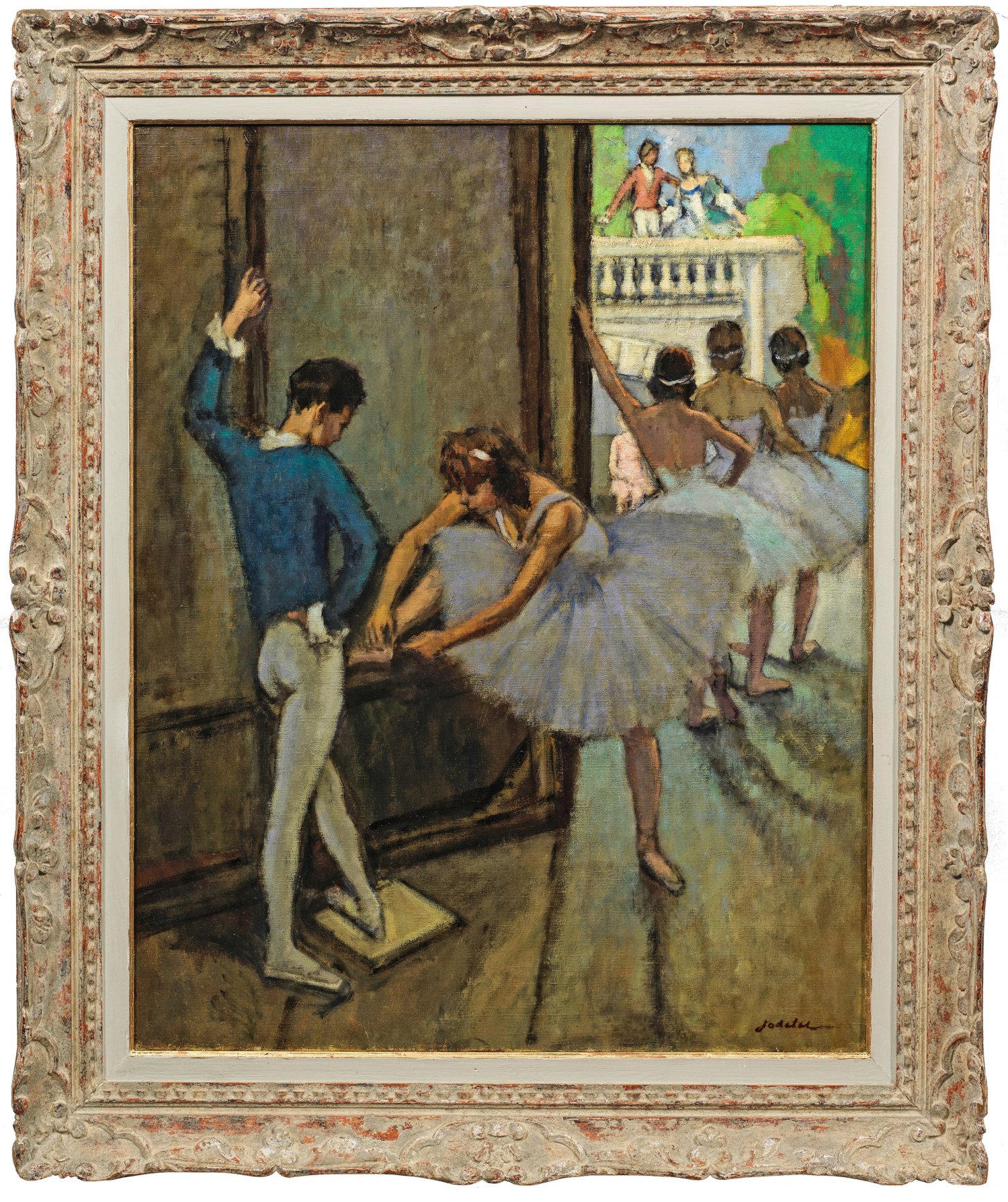 Impressionistisches Werk Jodelets, der in einer Reihe von Gemälden Ballettszenen, Motive aus der Opern- und Theaterwelt darstellte, wohl inspiriert durch Edgar Degas. Charles Emmanuel Jodelet war ein Schüler von Bernard Naudin und Charles Guérin, stellte im Salon d'Automne und im Salon des Tuileries in Paris aus. Öl/Lwd.; R. u. sign.; 80,5 cm x 65 cm. Rahmen.