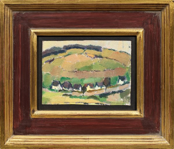 Sich der Abstraktion nähernde, spätimpressionistische Ansicht Köhler-Roebers, die 1906 - 1914 in der fortschrittlichen Malschule von Johannes Walter-Kurau in Dresden und der modernen Debschitz-Schule in München lernte. Öl/Karton. Wvz.-Nr. 349. Ca. 12,5 cm x 17,7 cm. Rahmen.