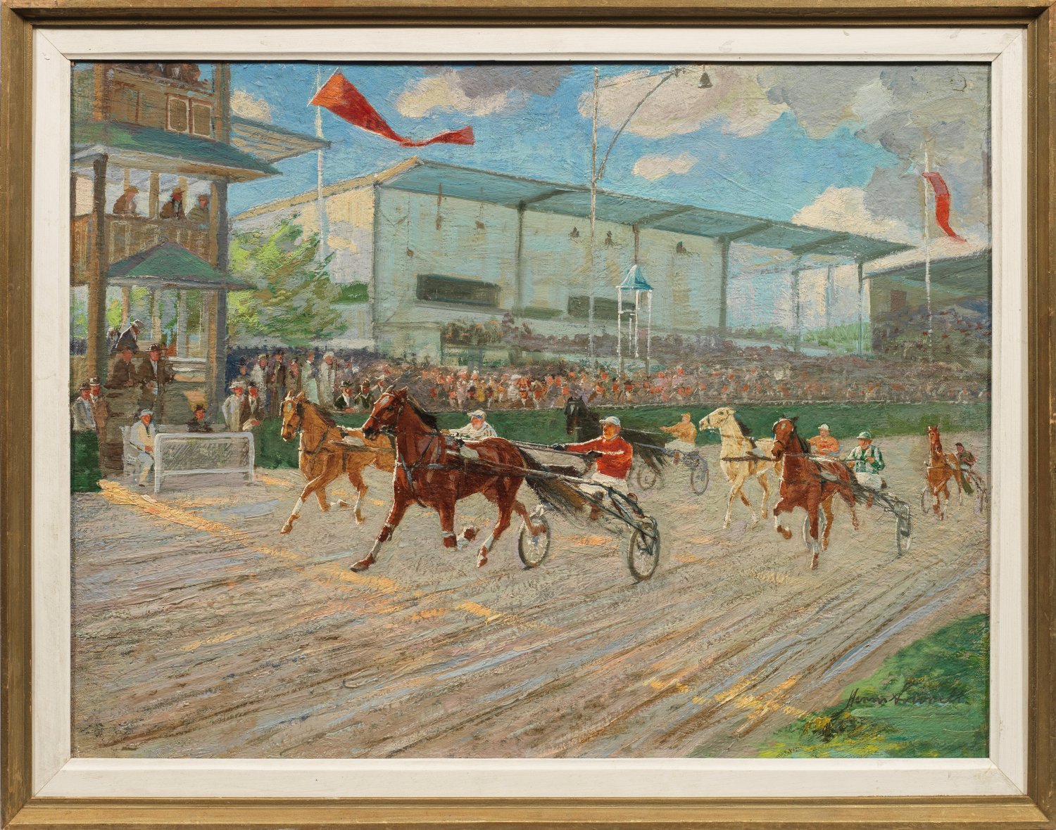 Heitere, durch eine bunte Schar an Zuschauern belebte, dynamische Ansicht des Berliner Künstlers, der seine Werke mehrfach auf der Großen Berliner Kunstausstellung präsentierte. Öl/Lwd., kaschiert auf Karton. R. u. sign.; Verso betitelt und bez.; 51 cm x 67,5 cm. Rahmen.